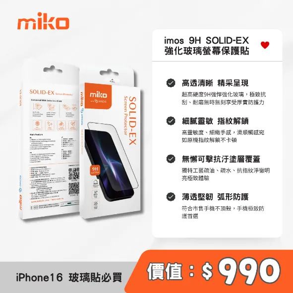 🎁獨家好禮2:imos 9H聯名強化玻璃貼(價值$990)