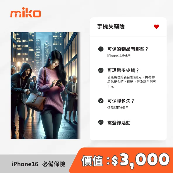 🎁獨家好禮4:手機失竊險(價值$3,000)