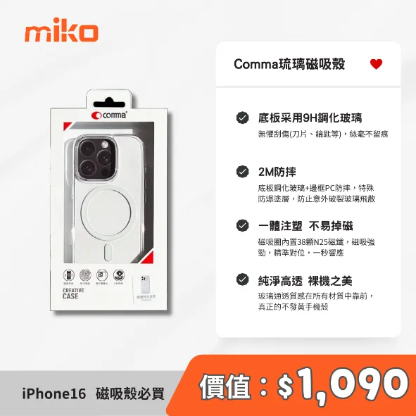 🎁獨家好禮1:comma 琉璃磁吸殼(價值$1,090)