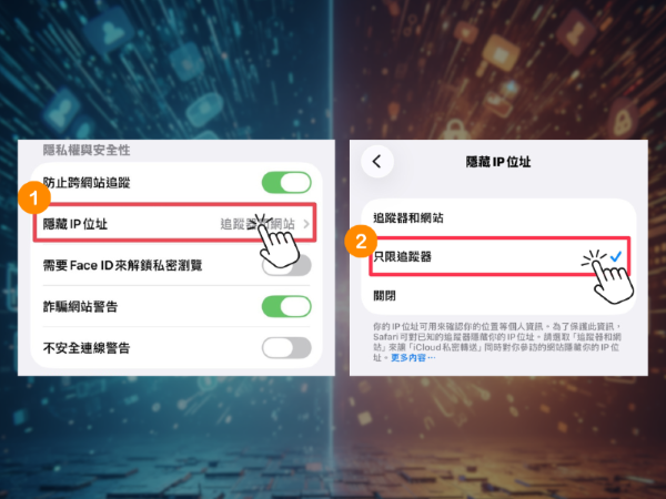 打開【 設定 → Safari → 隱私與安全性 → 隱藏 IP 位址 → 只限追蹤器 】