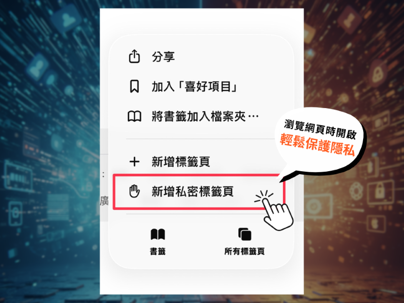 隱私瀏覽分頁:類似 Safari 的私人模式,不會留下瀏覽紀錄。
