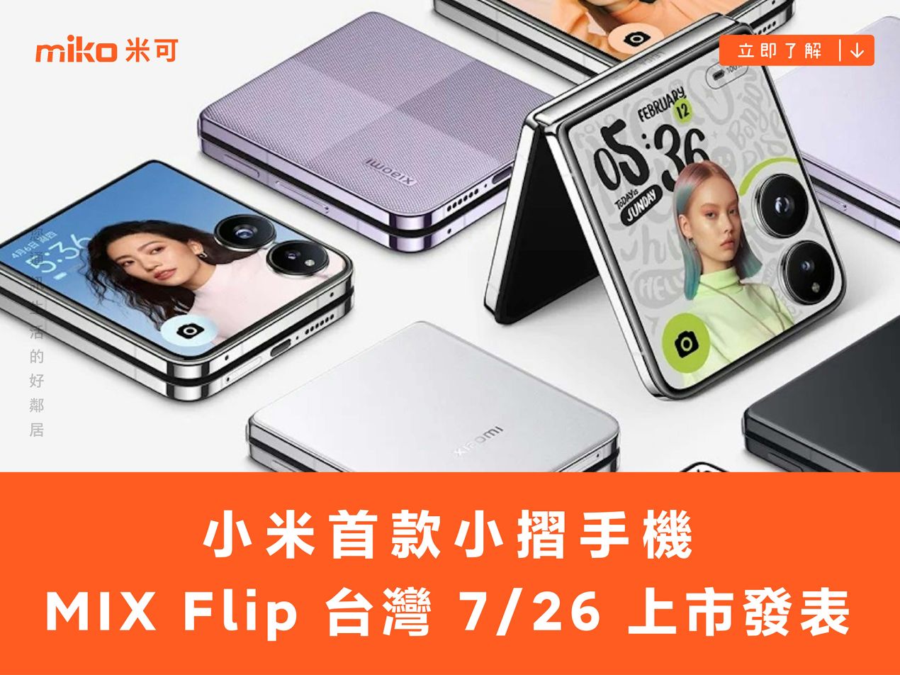 7 月可以說是小摺手機的爆發月,繼 Motorola razr 50 系列、Samsung Galaxy Z Flip 6 後,現在就連小米旗下首款小摺手機 MIX Flip 也即將在 7 月與台灣消費者見面。小米稍早發出媒體邀請函,預計在 7 月 26 日舉辦 MIX Flip 的上市發表會,另外還有小米手環 9、Xiaomi Buds 5 耳機等產品也會同步亮相。